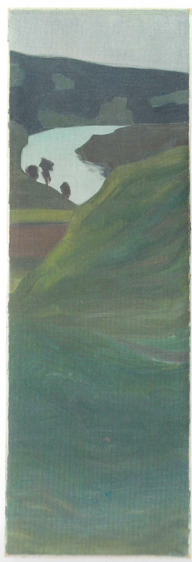 Ein Blick in die Aare-Landschaft: gewundene Täler, abgestufte Terrassen. Das Bild stellt sich auch als vertikales Panorama dar. Ein Frühwerk von Paul Klee, ohne Titel, um 1900; fünf gleich formatige Bilder bilden den ganzen Zyklus.